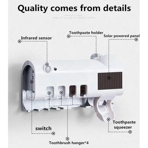 بالإضافة إلى ذلك، يأتي هذا الجهاز بتصميم أنيق وعصري يتناسب مع ديكور حمامك، ويعمل أيضًا كحامل عملي لفرشاة الأسنان ومعجون الأسنان، مما يساعدك على تنظيم أدواتك الشخصية بشكل أفضل. يتميز حامل فرشاة الأسنان الذكي بتقنية الاستشعار الأوتوماتيكية التي تعمل على توزيع معجون الأسن